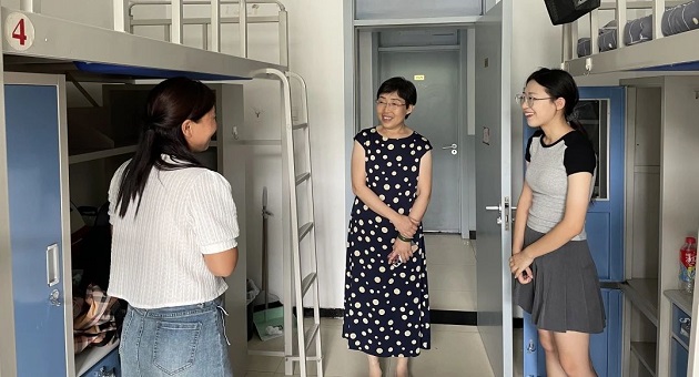 学院党委书记张颖以及新生辅导员姜智颖前往新生宿舍,关心慰问新生环境适应情况,鼓励大家以良好的精神面貌迎接全新的研究生生活。